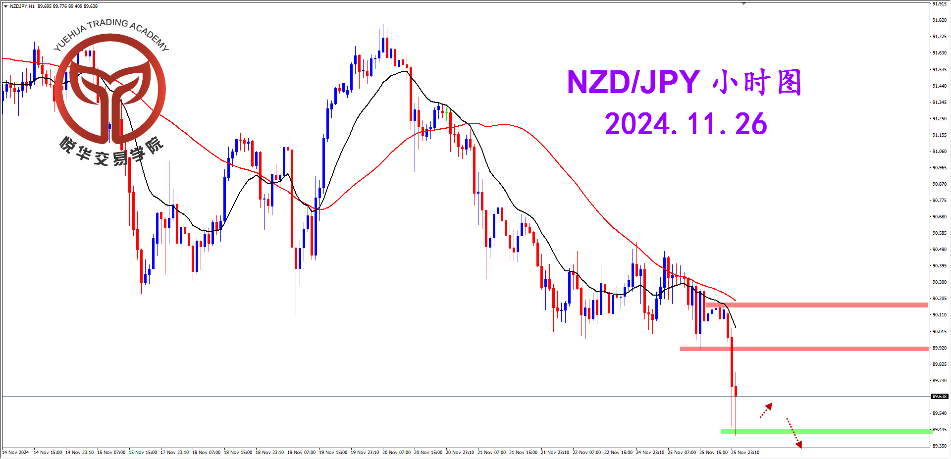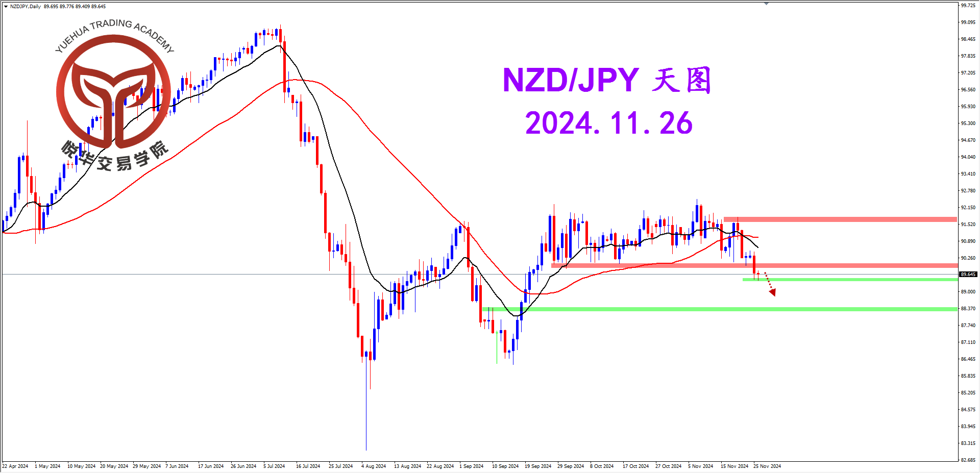 纽日天图,昨天行情最终收出一根阴线形态,幅度虽然不大但也跌破了区间震荡的下轨支撑,按正常逻辑思路后市行情有继续走弱的机会,密切关注短期可能的合理的空头机会。