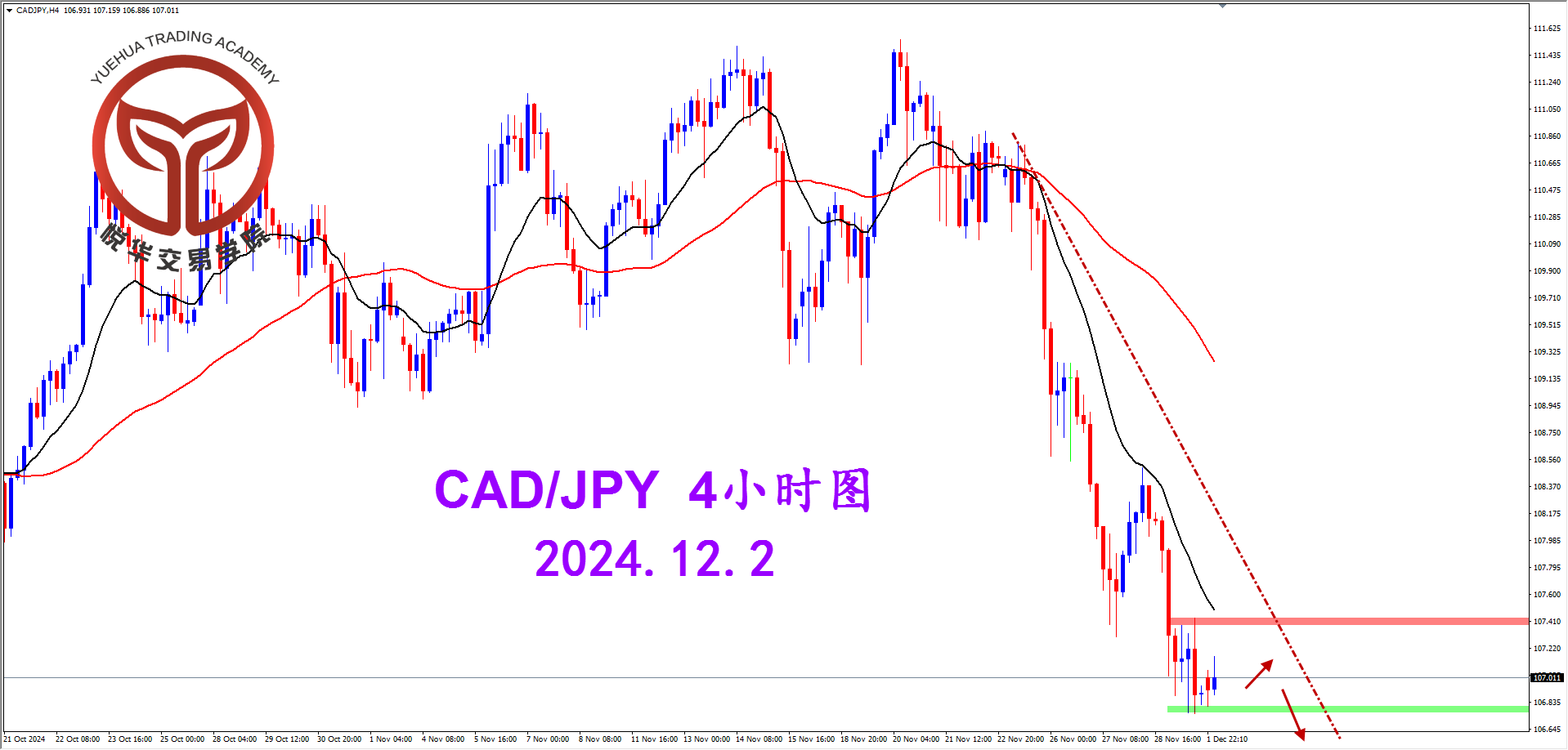 加日周图,上周行情收出一根坚决巨幅阴线,空头情绪浓重且有继续走弱机会,本周密切关注合理的短期充分调整后的高概率机会,下看更低位置一带。
