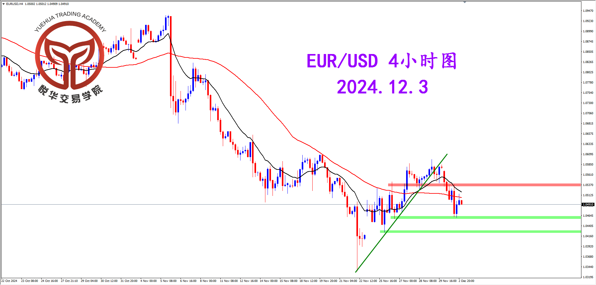 欧美4小时图,行情经过调整后有走弱表现但下跌幅度有限,后市空头能否持续发力要看一些关键支撑能否跌破,密切关注1.0458水平支撑附近的破位机会。