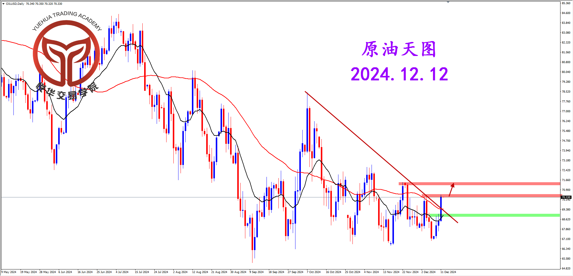 原油天图,昨天行情收出坚决阳线,突破了上方压力线压制,目前的强势表现多头主导,调整后有望继续向上运行,但也需要注意周线的均线压制。