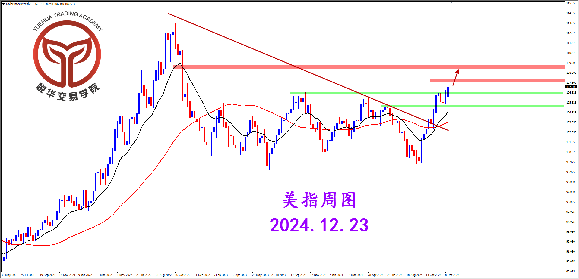 美指周图,上周行情虽然收出阳线但却没有站稳上108.00的关键压制,多头情绪降温,但不排除调整充分后继续向上,只是需要时间和更多证据证明多头能够继续向上,否则暂时观望。