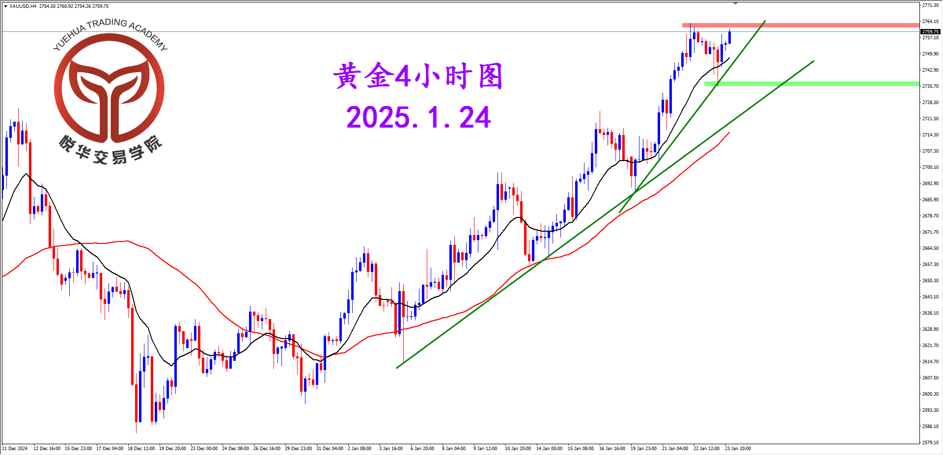 现货黄金4小时图,在压力位置附近有遇阻回调,在15EMA均线的支撑位置附近有企稳向上的表现,目前看多头有启动潜力,密切关注2763.0水平压制突破后的多头机会。