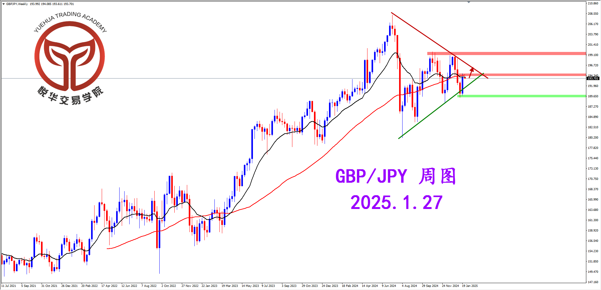 镑日周图,上周尾盘最终行情收强,周线现一根坚决大阳线,也是回踩支撑位置后企稳大幅拉升,多头主导后市走向,建议投资者密切关注后市可能的持续拉升机会。