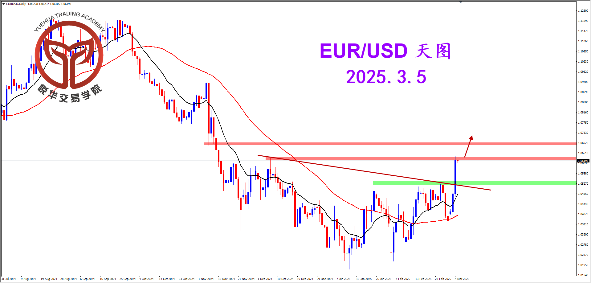 欧美天图,昨天行情收出坚决巨幅大阳线,强势站稳关键压制作用,目前暂时遇阻于1.0630附件,后市做必要调整后有望继续向上,建议保持多头思路,等待短期充分调整结束后的多头机会。