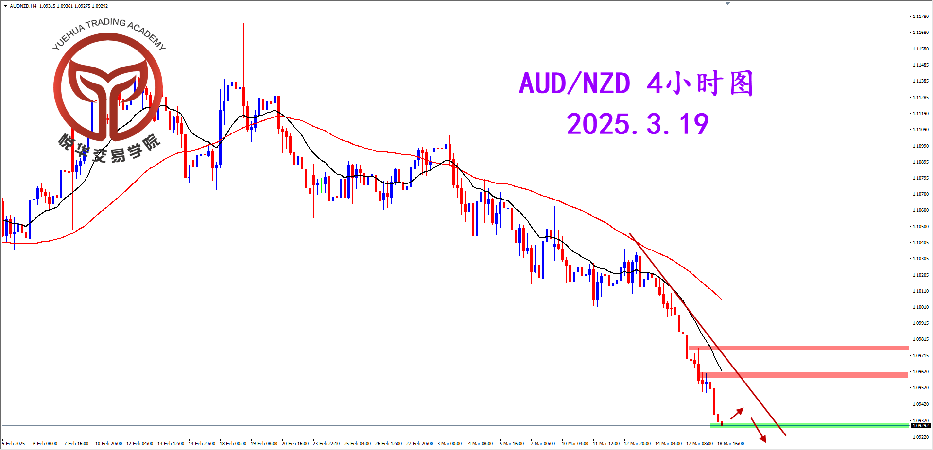澳纽天图,昨天行情继续坚决走弱收出阴线形态,并且跌破了1.0940的关键支撑位置,奠定了绝对的空头基调方向,只是下跌过程稍显极端,再空需要一些短期形态的配合。