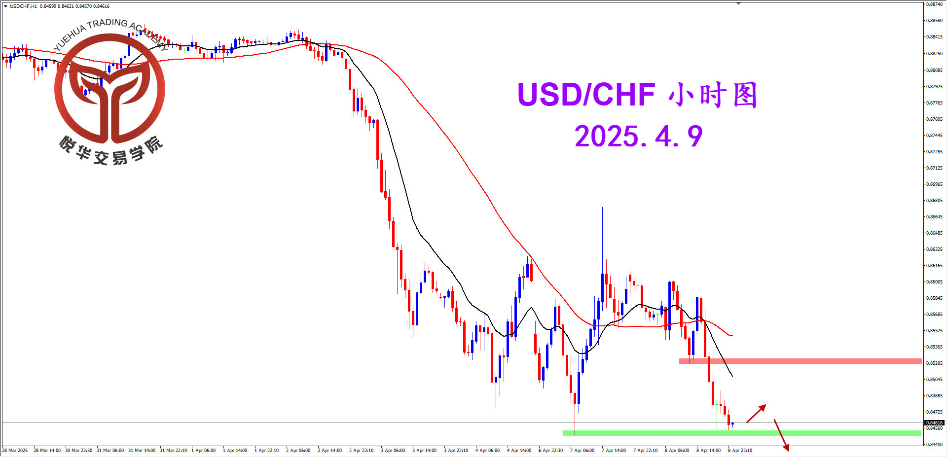 美瑞小时图,虽然昨日先期横盘震荡调整,但夜盘在消息面后市场再度大幅跌破走弱,表现相当弱势,密切关注0.8450支撑附近的合理形态,关注可能的空头机会。