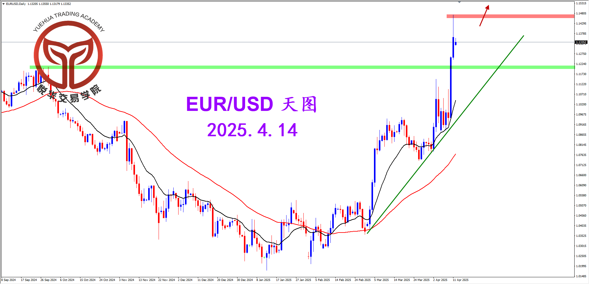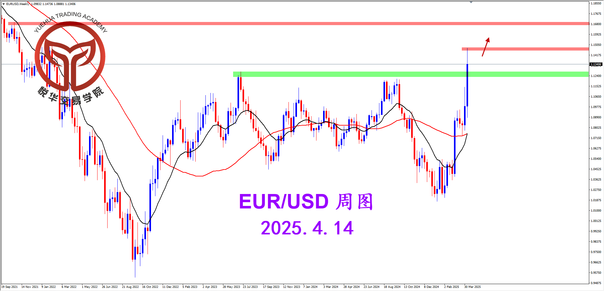欧美周图,上周行情收出一根巨幅大阳线,直接突破了1.1214-1.1270的格局水平压力带,奠定了多头格局方向,有望继续向上运行,保持多头思路寻求多头机会。