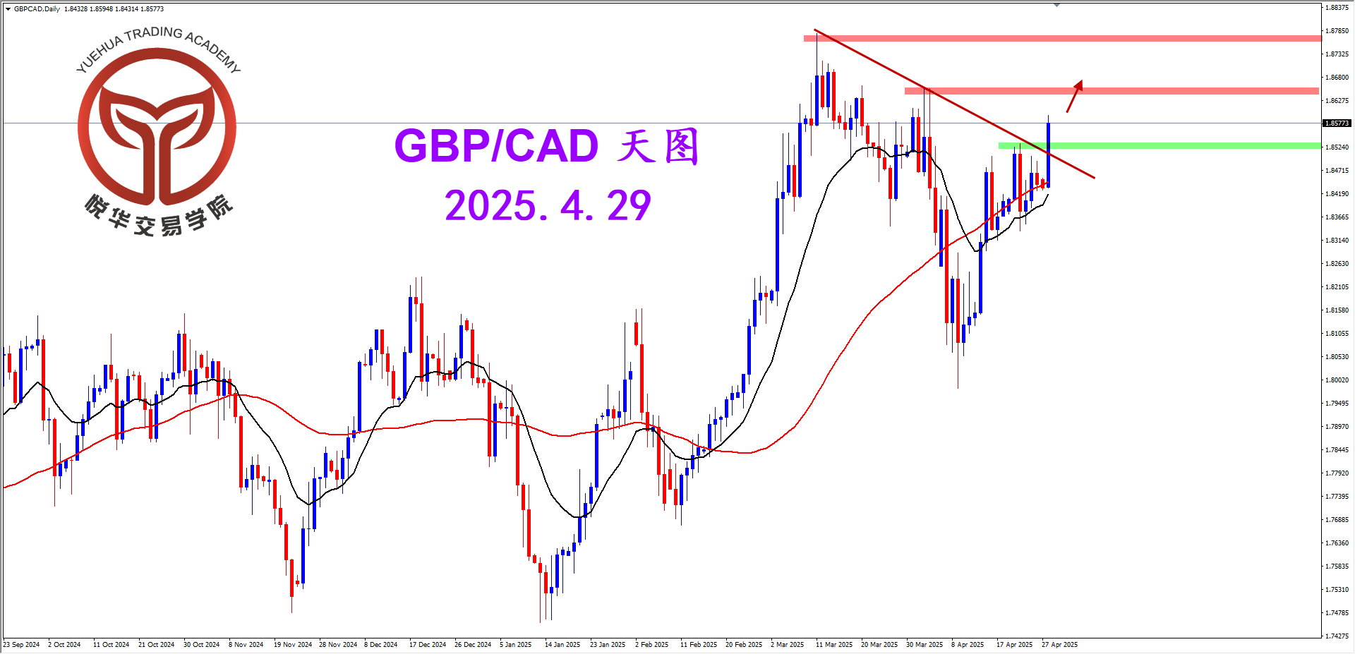 镑加天图,昨天行情收出坚决大阳线,一举突破了压力线和水平压力位置,奠定了多头格局方向,按目前的发展逻辑有望继续走强,密切关注后市合理的多头入场形态。