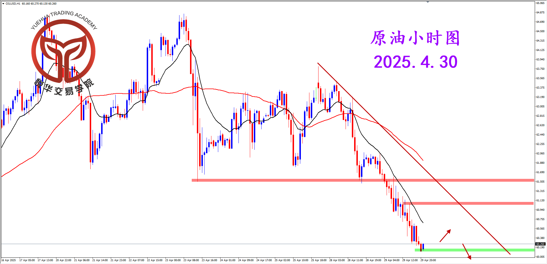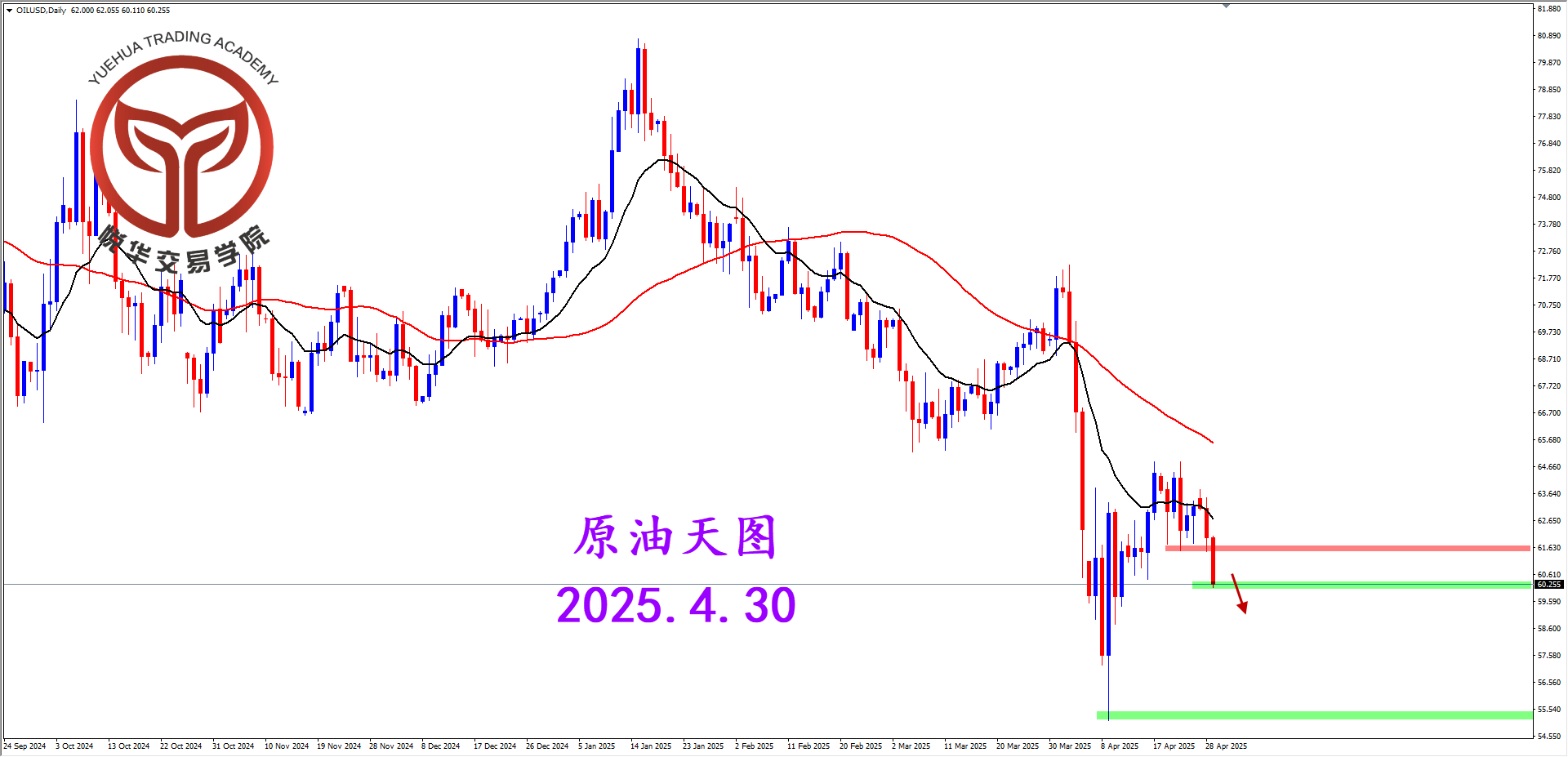 原油天图,昨天行情收出坚决阴线,也跌破了短期61.45的水平支撑位置,这是行情经过反弹测试周图格局压制后再度出现的走弱表现,预示空头格局没有失效,后市继续关注高概率的空头机会。