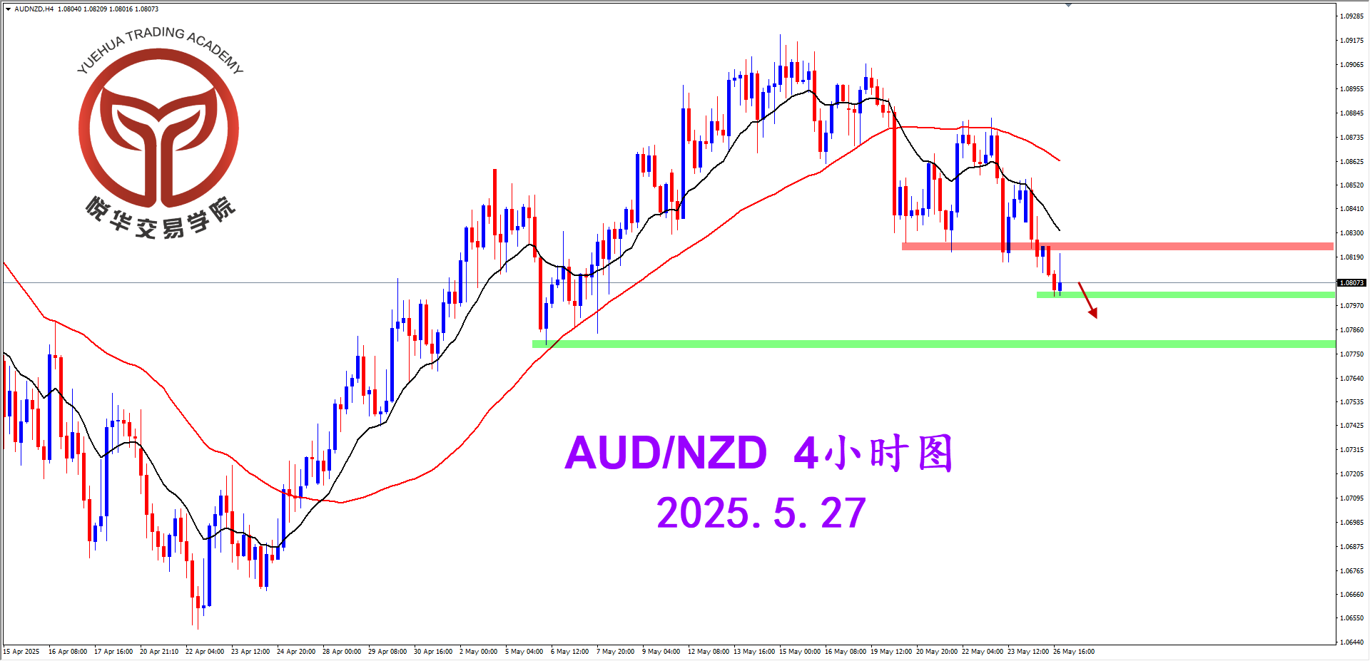 澳纽4小时图,虽然之前行情一路拉升走强但这波多头已然被消耗殆尽,并且均线也通过调整转为下行,关键支撑被坚决跌破,适当关注可能的短空机会。