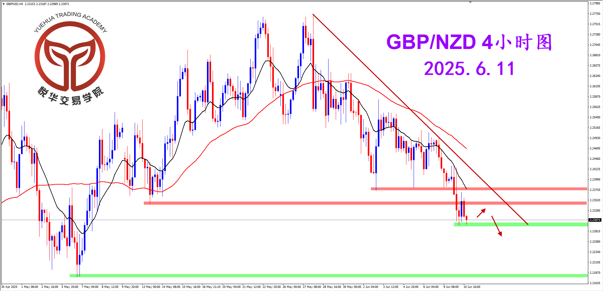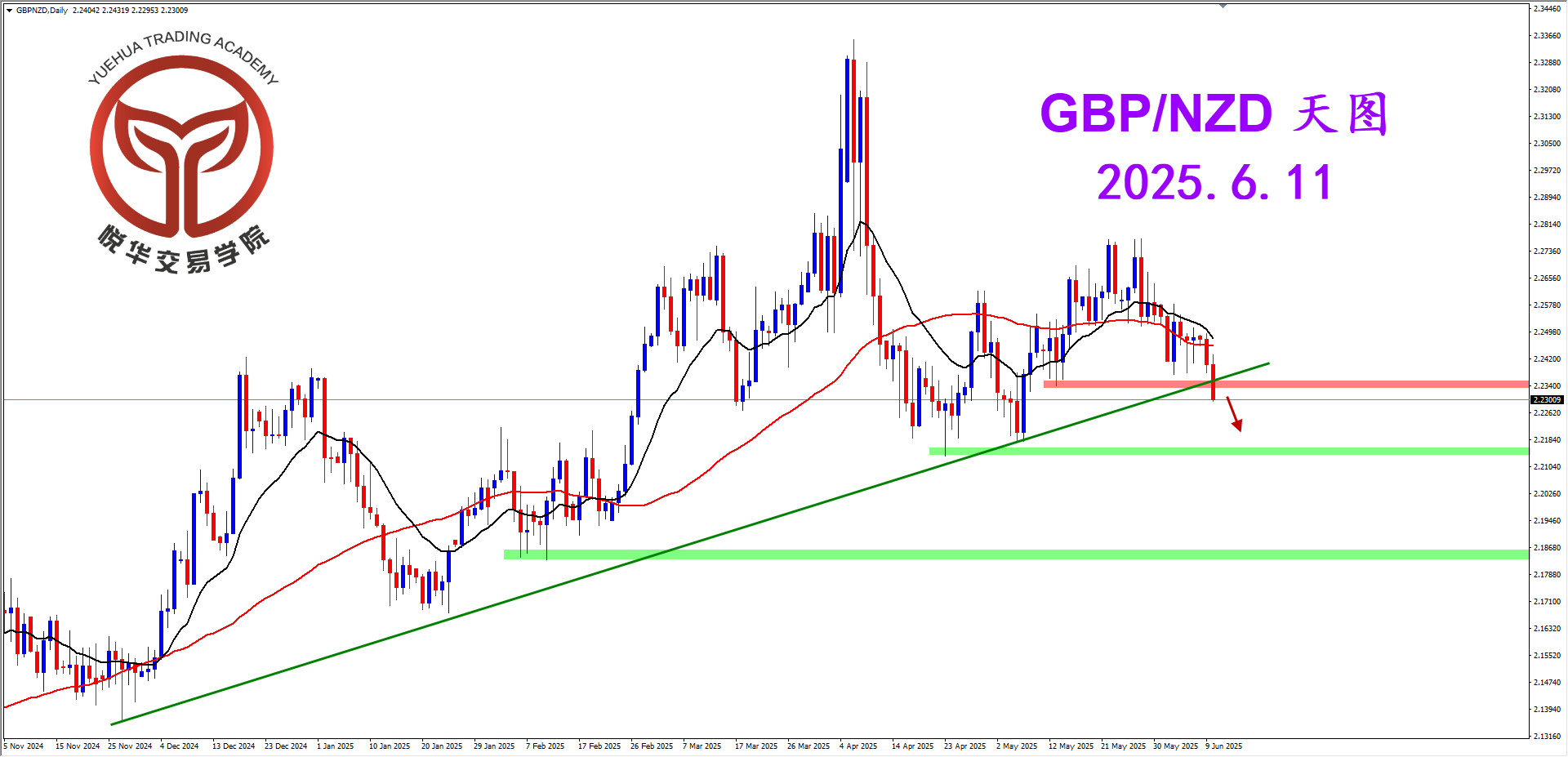 镑纽天图,昨天行情收出坚决阴线,跌破了包括水平支撑在内的多个关键支撑作用,结束了调整也开启了空头基调,建议投资者在目前市场环境下保持空头思路,关注合理空头机会。