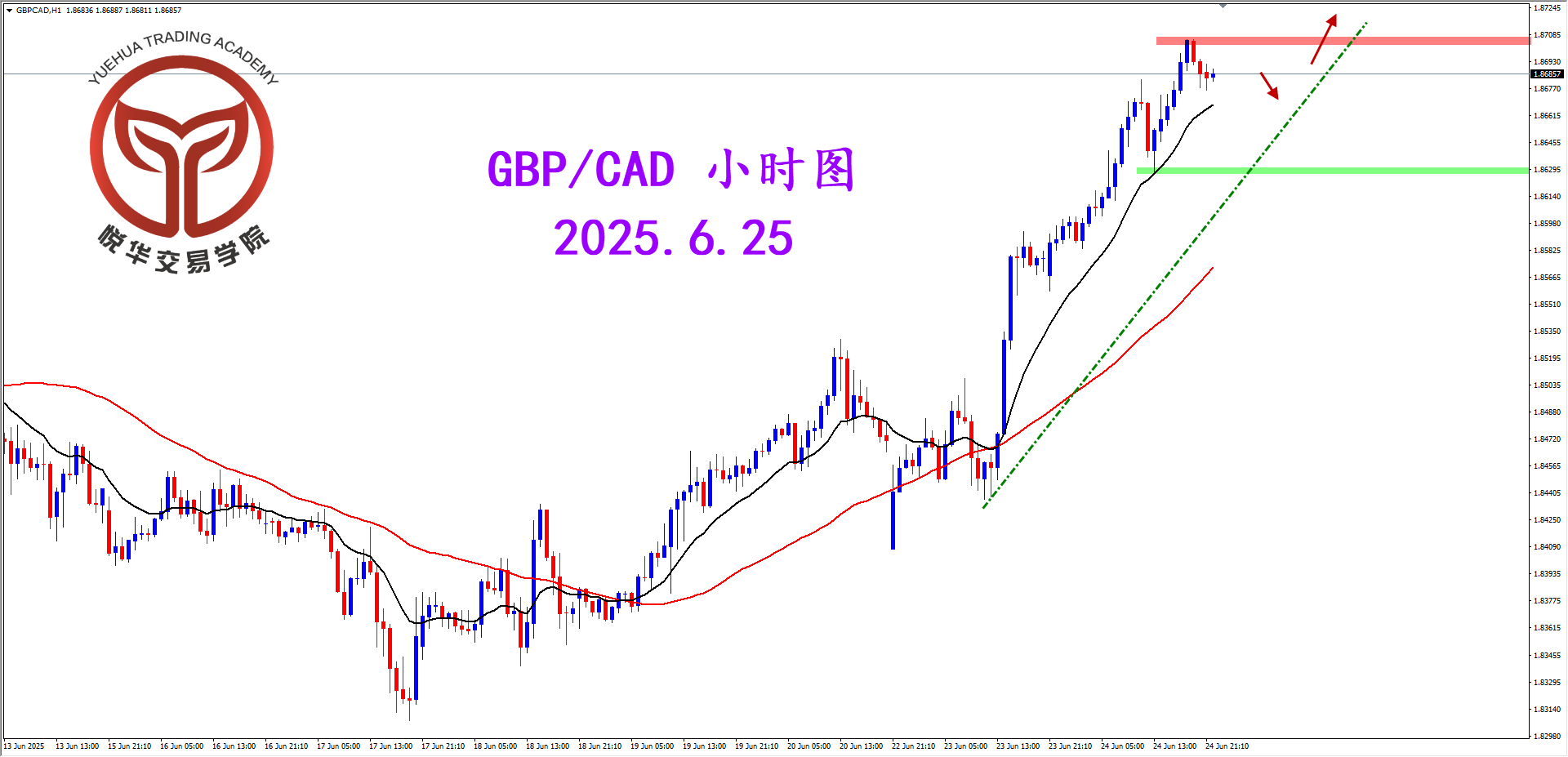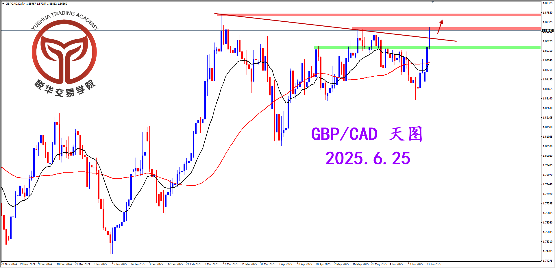 天图连续两天的坚决阳线预示多头主导行情,只是短期看拉升极端面临关键水平压制需要进行必要调整,注意交易节奏,等待横盘调整结束后的高概率破位多头机会,目标位先看1.8776一带,如能持续突破则持有。但如果调整后行情大幅走弱则回归观望。