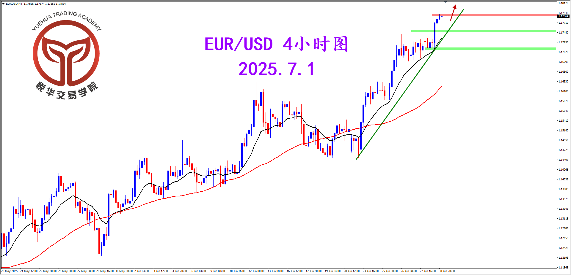 昨天欧美行情收出阳线站稳上了关键压制,虽然蜡烛形态幅度不大但市场流向得以延续发展,从另外的角度看多头应该是要重启拉升,所以建议投资者开始要密切关注多头机会形态,耐心等待短期调整后的高概率多头机会。