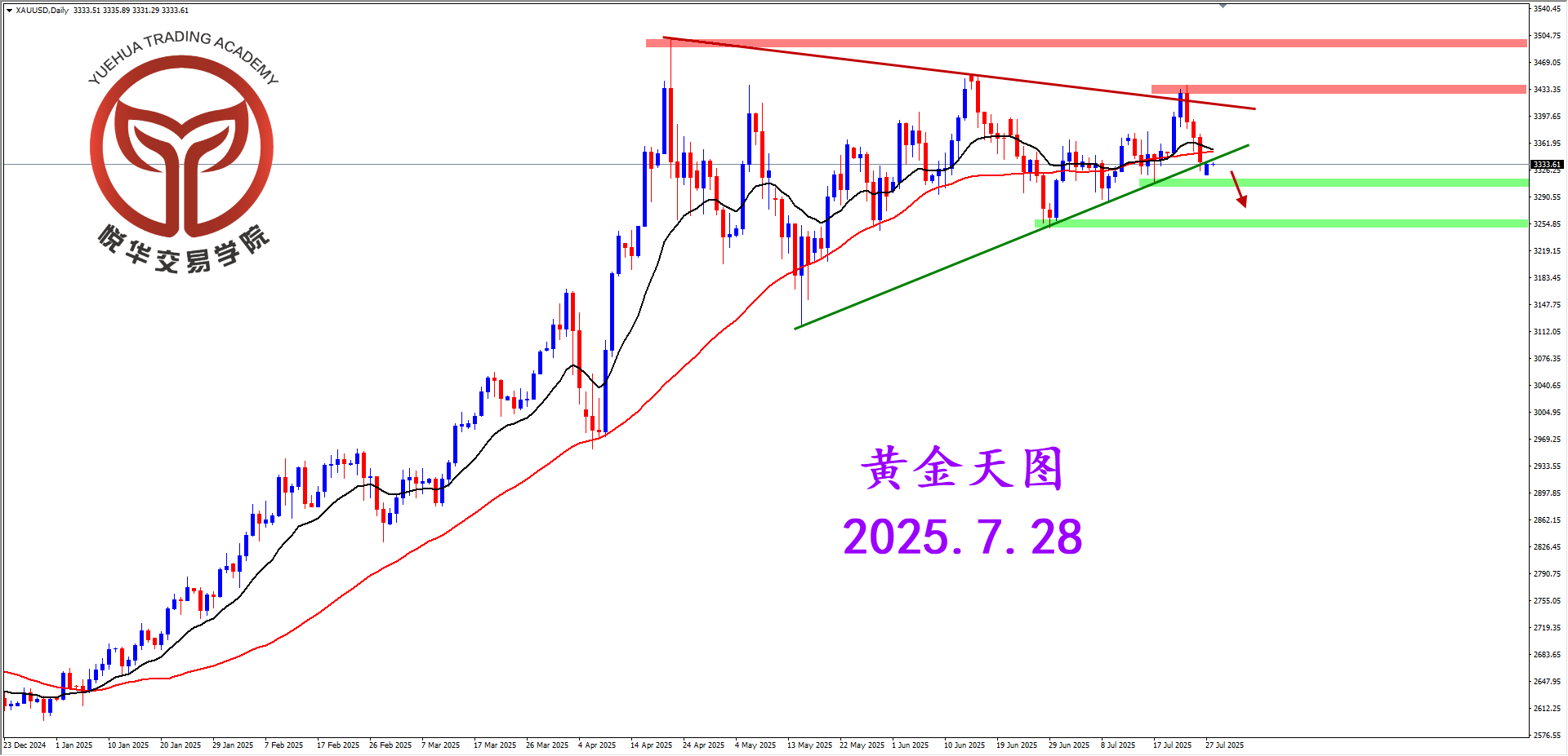 黄金天图,行情冲高到压力线和3436.5的水平压力位置后极端下跌,目前已经连续多日下跌走弱,并且有一些合理的高概率的短空机会形态,但目前已然到达关键支撑,市场恐要围绕支撑博弈调整。