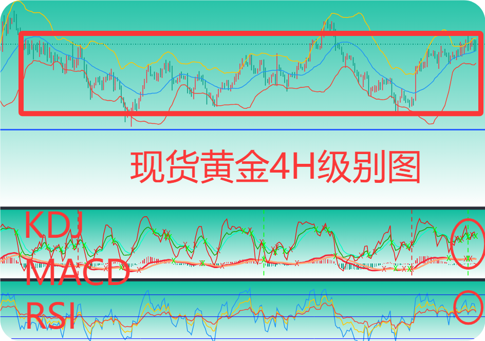 ❷:4小时级别上:布林带开口收窄,金价在布林带中轨上方运行;MACD 技术指标快慢线胶着中,RSI 技术指标超买回落状态,金价冲高回落需求明显,后市关注 3300 支撑与 3400 阻力;