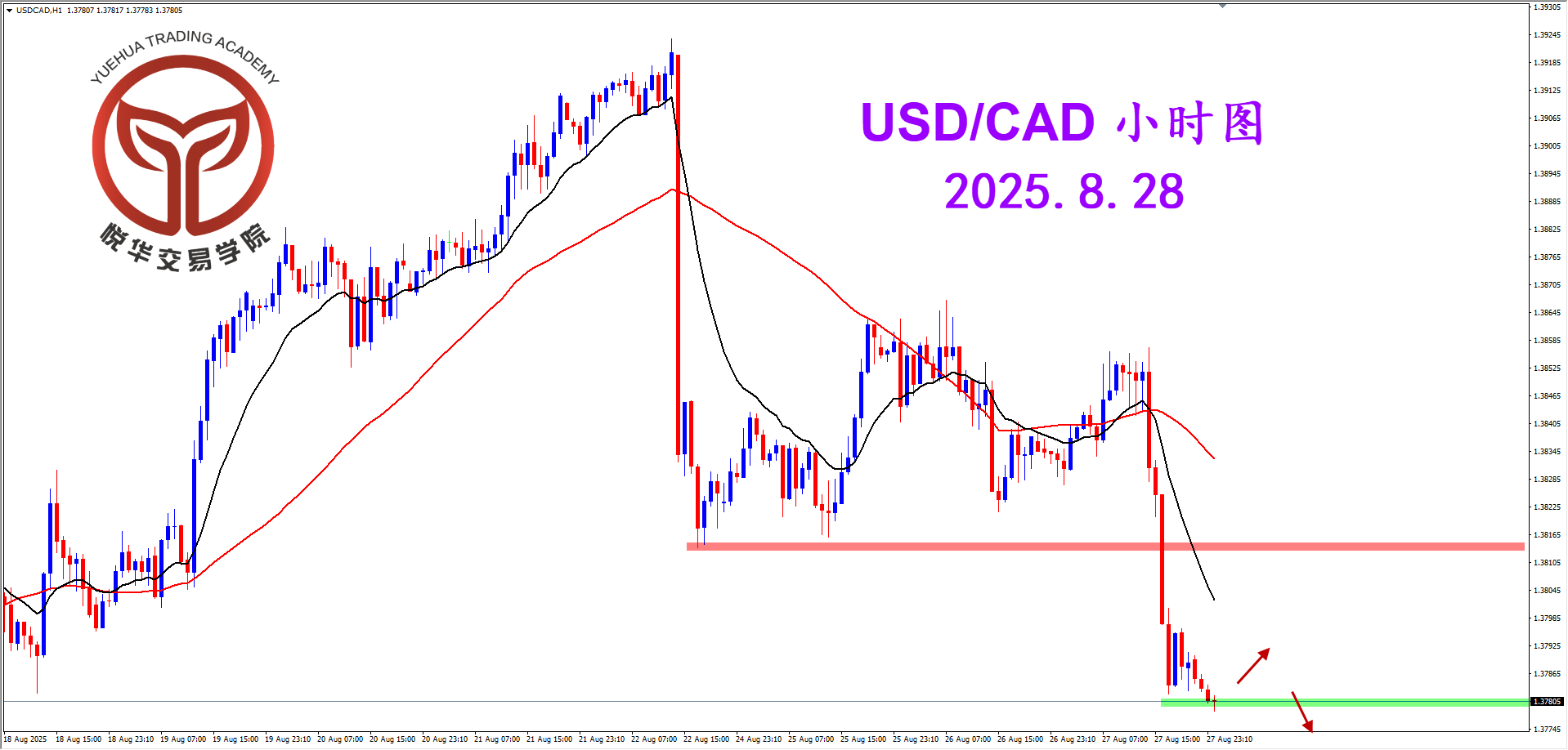 美加小时图,距上段下跌后的行情经历了较为宽泛的调整过程,最终继续破位走弱,空头流向延续发展,只是这种大幅度的调整后再度破位不好追空,等待后市更加合理的高概率空头形态。
