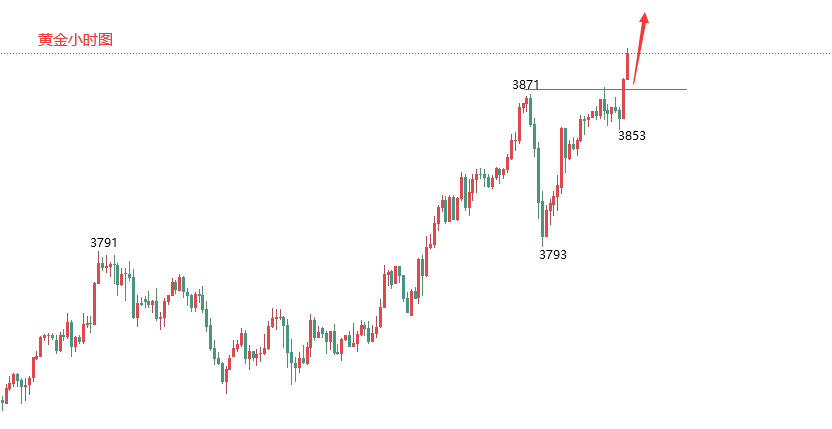 技术面看,日线依托5日均线逐步走高,目前K线四连阳,今日有望形成5连阳,布林带走平再次向上发散,均线呈多头排列,说明黄金当前处于极强状态,只要回踩不破5日均线。这种强势上涨不会改变,下方的支撑点依次在5日均线3820,10日均线3765,因此,强者恒强,不怕多头上涨,就怕回落破位,4小时级别昨日一波大跌形态上出现一根吞沿大阴线,但最终延续性不足,且没有破位布林中轨支撑,多头结构不变,单阴也只是修正,今日K线连阳上涨突破新高,多头强势不言而喻,上涨无懈可击。因此,今天还是要保持多头趋势继续看涨,那么,下方关注两个点位,一个是周二高点3871,另外一个支撑点3853今日低点,所以,日内等待调整到这两个支撑点做多,美盘这根据实际数据影响再给判断,但大体上维持多头趋势,即使数据利空回落也是做多。