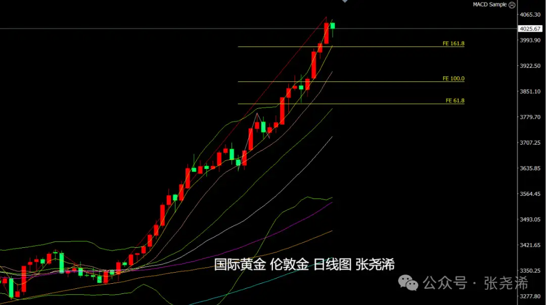 上交易日周三(10月8日):国际黄金继续强势反弹收阳,受到美国****“停摆”危机持续发酵,避险资金源源不断地涌入而突破4000美元关口刷新历史高点,多头动力持稳,虽然有回调风险,但鉴于看涨前景良好,回调也将是震荡调整的入场机会。