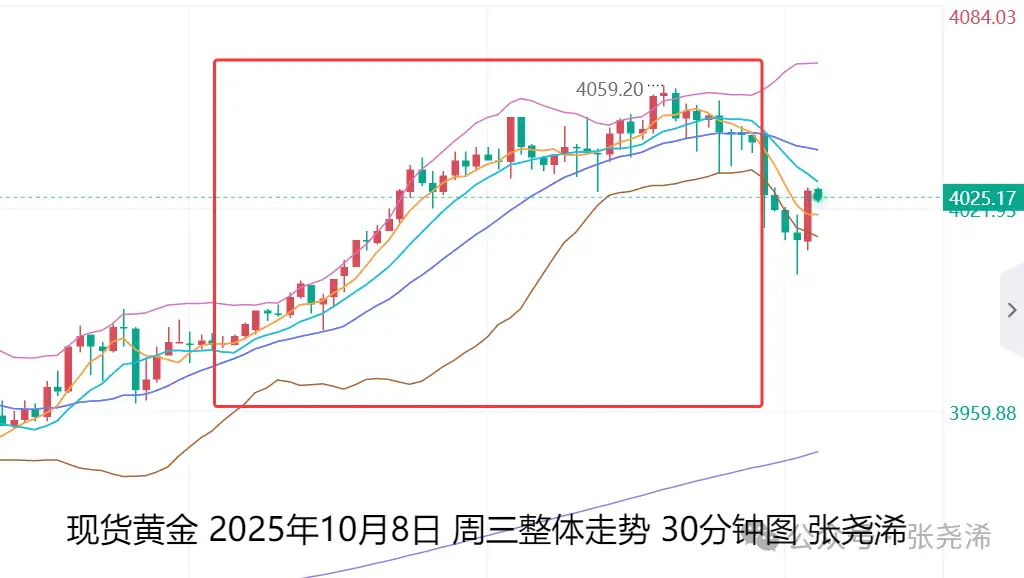 展望今日周四(10月9日):国际黄金开盘走低运行,早盘一度回落达40美金,中东地缘政治局势的突然转折,哈马斯与以色列达成停火协议迅速冷却了市场避险情绪,对金价产生打压,但同时也是很好的再度入场做多机会。