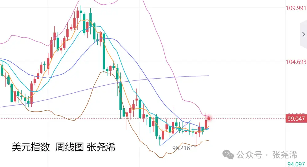 周图,金价自去年开涨攀升以来,如期第4次回踩中轨线支撑,并再度展开持续向上攀升的多头行情,不断到达给出的看涨目标位,目前虽继续运行在布林带上轨之外,但多头动力持稳,未有明显减弱迹象,加上目前走势初步突破阻力,因而,本周来看,依然还是偏看涨为主。值得注意的是,根据9转序列,下周过后,下下周将面临技术见顶回落和降息预期的回落风险,因而,下下周将谨慎做多。