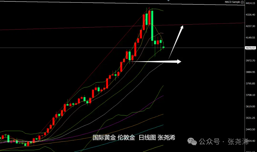 上方需突破10日均线阻力,才能加大看涨动力回归看涨攀升,否则将有再度回踩4000关口或30日均线支撑3960美元,乃至60日均线支撑位置。