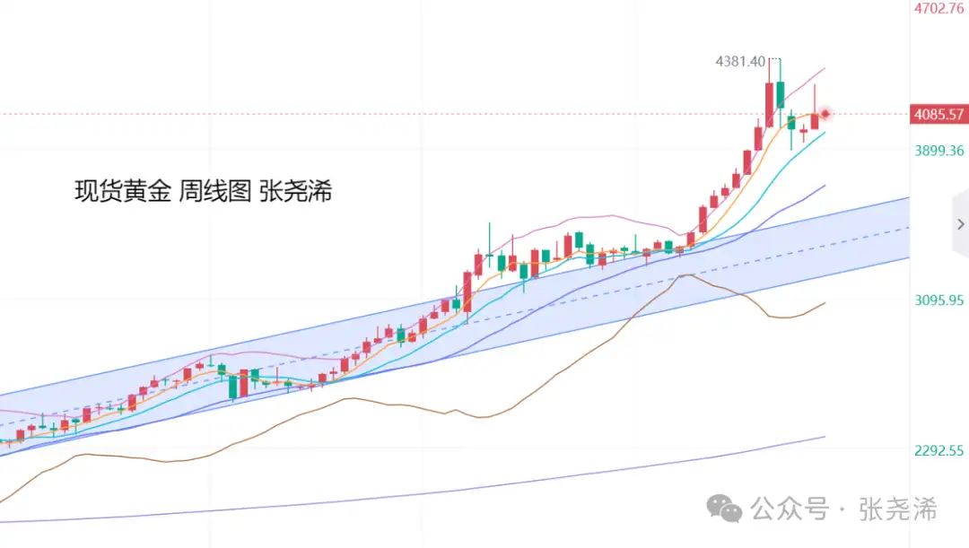 黄金市场上周:国际黄金冲高回落倒垂收涨,虽有一定的反弹见顶预期,但也仍运行在10周均线上方,以及布林带仍倾向上行,后市仍具看涨前景,但短期要么等待回落触及10周均线或中轨线附近支撑止跌看涨,要么等待重回4300美元上方收阳顺势跟进,在此之前震荡调整对待。
