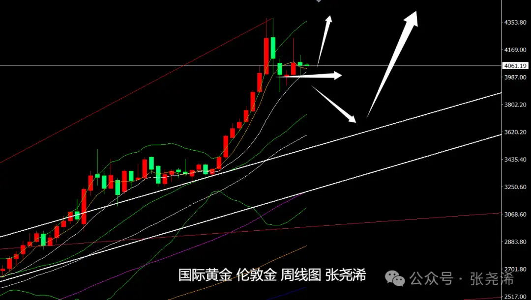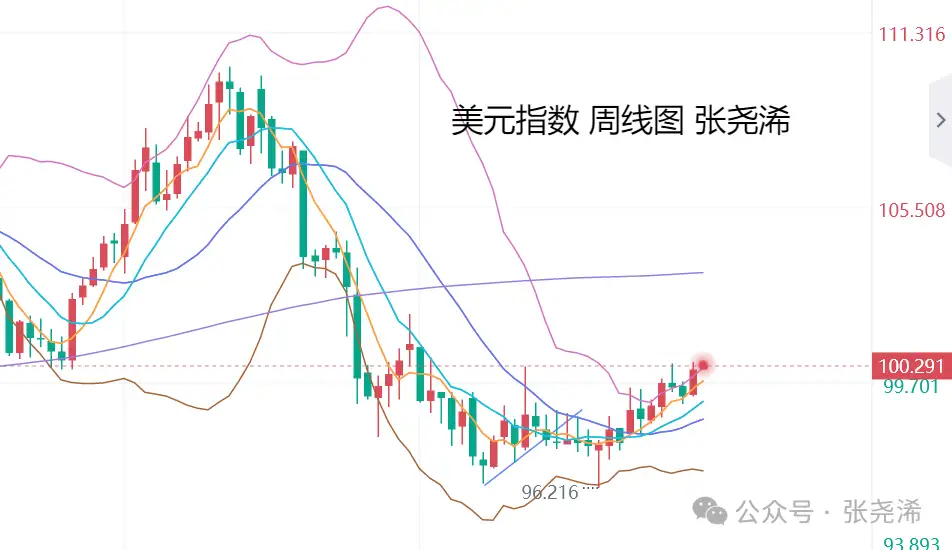 技术上,周线级别,金价上周触底回升收线在10周均线上方,空头未能进一步加强,布林带也维持向上延伸,暗示后市仍有再度走强攀升的预期,10周均线支撑位,仍是可初步再度入场看涨的机会,如跌破此支撑进一步走低,按照历史走势规律,在触及中轨线及30周均线支撑附近,也是再度开启阶段性牛市的起点和入场机会。