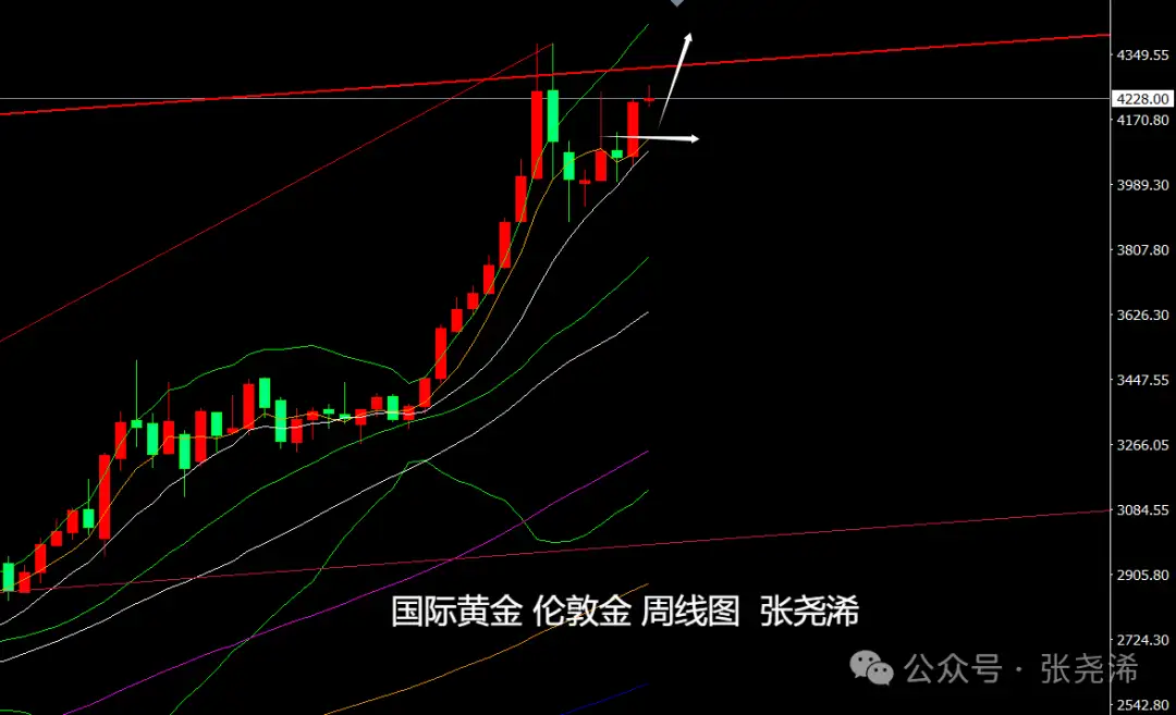 日图;金价目前反弹再度触及趋势线压力位置,有所回撤,短期有回调走低风险,但下方众多均线已转为支撑,故此,如有回撤,下方关注10日均线及60日均线等支撑,也可自再度入场看涨,上方关注昨日高点阻力,突破持稳收阳,则进一步可看涨至4380美元附近。
