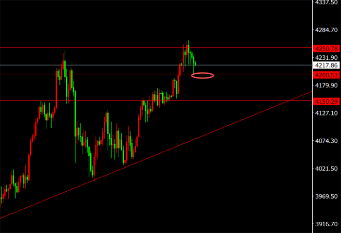 周一现货黄金价格触及六周高点,每盎司一度攀升至4264美元,美联储降息预期的持续发酵、美元的疲软走势,以及美国制造业数据的低迷表现,推动贵金属价格进入一个强劲的横盘整理至上涨趋势。技术面目前金价有望与此前高点形成双顶压制,不过日内还需要进一步观察4200百点关口能否企稳,企稳则继续看高位震荡,破位则看4150多头防守点。