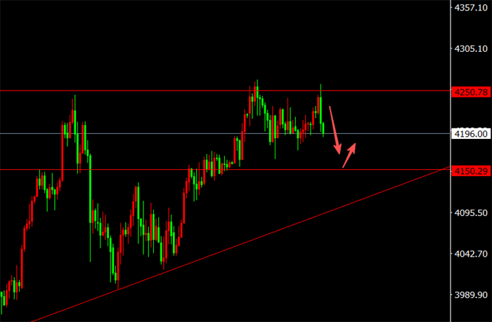 由于美联储青睐的通胀指标9月份维持在3%以下,不太可能阻止美联储在下周会议上降息,国际现货黄金周五盘中短线拉升,一度逼近4260关口,但随后高位回落,回吐日内全部涨幅,收于4200整数关口下方,录得0.5%的单周跌幅。技术面目前金价整体走势依旧震荡偏空,下周初操作上先行看延续回落,在触及方关健支撑后可尝试反手逢低买入。
