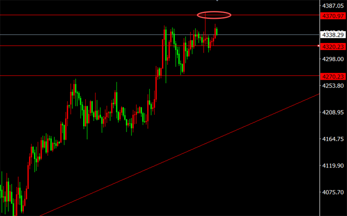 现货黄金本周维持高位宽幅震荡格局,受美元走弱和美债收益率下滑提振,金价多次冲击4350美元乃至4370美元上方,但均未能站稳,走势呈现“冲高—回落—再反弹”的反复拉锯。技术面目前金价依旧属于上涨趋势,不过历史前高附近抛盘现象过于明显,且在未突破前上方空间已十分有限,操作上可先行看回撤4320-4270支撑力度。