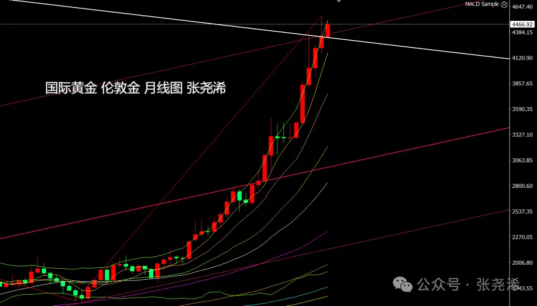 反之,如本月再度收取倒垂至趋势线之内,则需留意后市有再度展开较大回调,去回踩4000-3900美元区域或更低位置的风险;