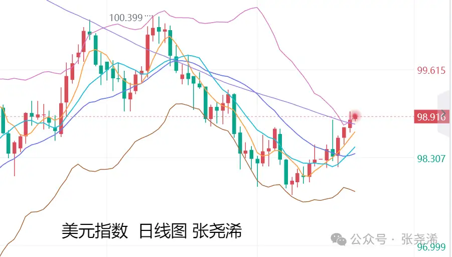 日图;金价近日多头动力减弱,但仍处于中轨及短期均线上方,多头占据优势,短期将陷入震荡调整或走低回撤为主,但下方均线支撑众多,整体维持上升趋势不变,故此,如有进一步走低,下方关注各均线支撑位置,也是看涨入场的机会。