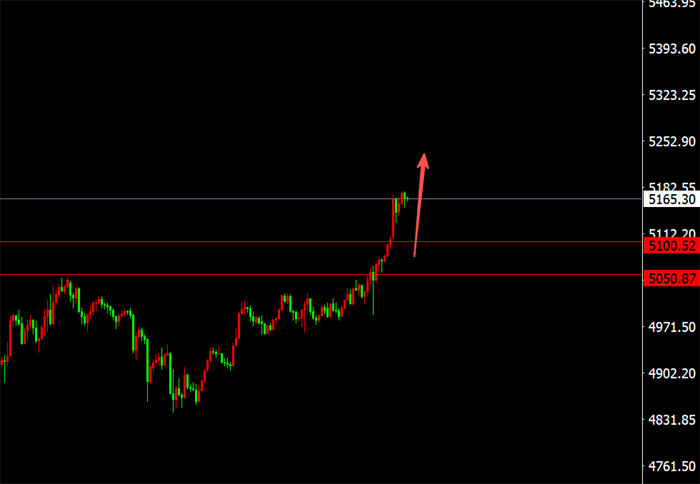 操作建议:回踩5100--5080附近看涨,如美盘强势突破5200可顺势短多一次,目标看5230--5250--5280附近