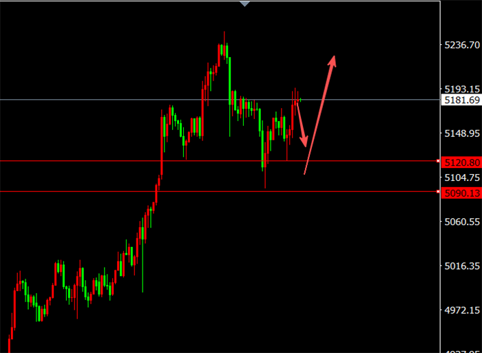 操作建议:日内回踩5120--5090一线做多,目标看5200--5250--5300附近