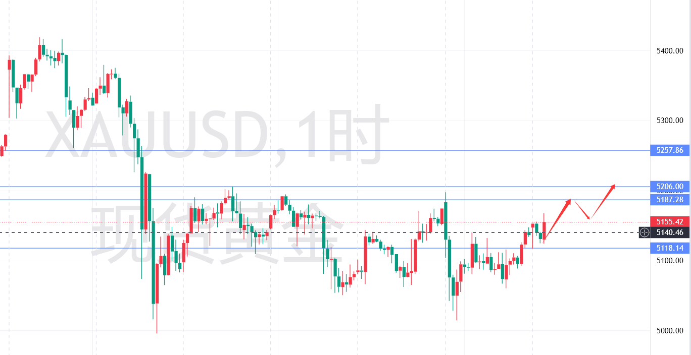 黄金上周虽经历一波下探(高点5419至低点4996),但后半周的止跌反弹已明确释放看涨信号,且反弹动能持续延续。从当前趋势来看,前期的下探更偏向于上升过程中的健康回撤,而非趋势反转——本周至今未跌破上周低点4996,便是最直接的看涨佐证,说明下方买盘支撑强劲,多头力量正在逐步积蓄。从支撑层面来看,上周形成的两个低点(含4996)可作为后续看多操作的核心保护位,只要不有效跌破该区域,多头趋势便不会被打破,可安心依托支撑布局看涨。