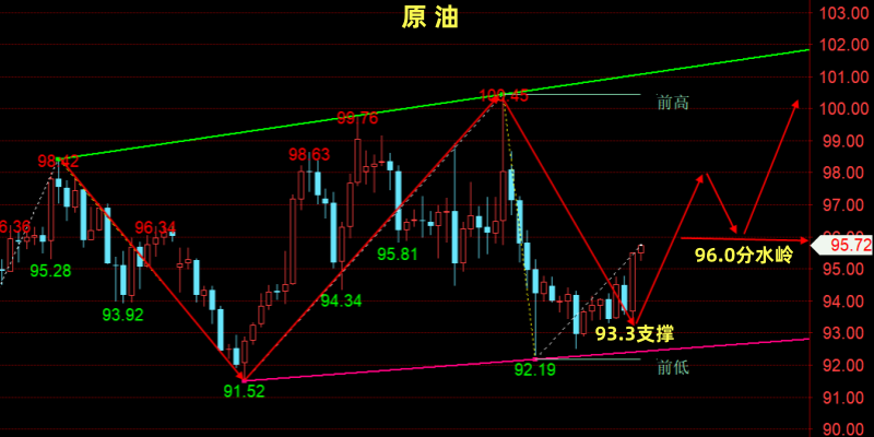 【个人建议:低多为主;WTI分水岭:96.0/桶!以上观点,仅供参考;分散合理布局,严控风险!关注笔者(企鹅:304236956)投资不焦虑,交易有方法】