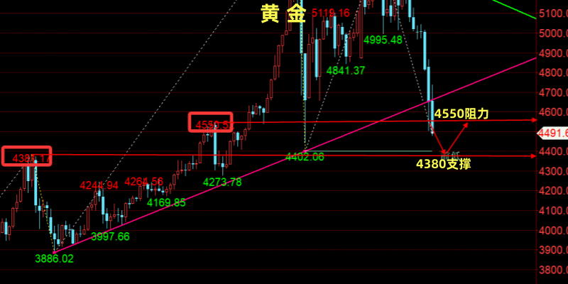技术面:从技术走势来看,黄金已跌破自去年11月初以来形成的上升趋势线,并失守100日简单移动平均线,显示中期结构正在转弱。与此同时,相对强弱指标(RSI)也自2024年11月以来首次跌破40,反映出市场看空动能明显增强。黄金在美联储鲍威尔讲话偏鹰派的影响下,持续发酵下行破位,黄金现在开始逐步探底企稳,不过目前还不能盲目进场,仍需耐心等待机会。黄金价值洼地开始逐步显现,黄金4380关口是中长期重要的转折线,如果不破4380,那么黄金牛市格局依然还在,等待黄金再次企稳可以逐步继续逢低北上。开盘重点关注上方4550-4600美元一线压力,下方关注4380-4300美元一线支撑。