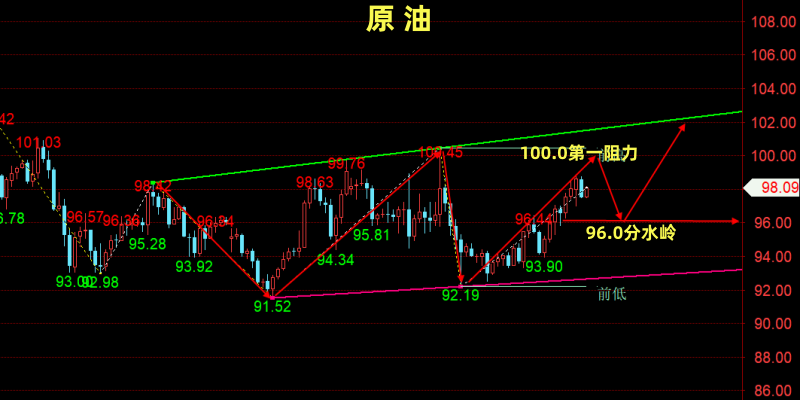 【个人建议:低多为主;WTI分水岭:96.0/桶!以上观点,仅供参考;分散合理布局,严控风险!关注笔者(企鹅:304236956)投资不焦虑,交易有方法】