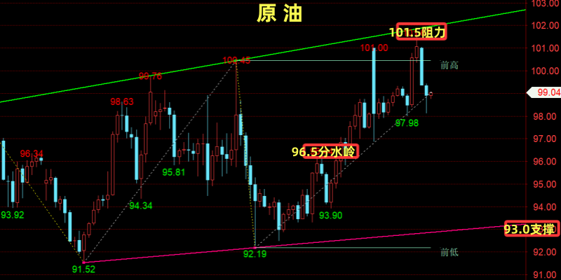 【个人建议:低多为主;WTI分水岭:96.5/桶!以上观点,仅供参考;分散合理布局,严控风险!关注笔者(企鹅:304236956)投资不焦虑,交易有方法】