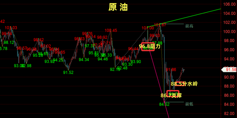 【个人建议:低多为主;WTI分水岭:88.5/桶!以上观点,仅供参考;分散合理布局,严控风险!关注笔者(企鹅:304236956)投资不焦虑,交易有方法】