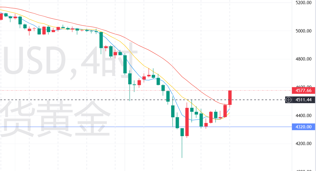 技术面解析:日线级别:伦敦金前期触底后收阳,已成功脱离震荡寻底区间,看涨形态明确,中长期趋势逐步由弱转强。价格已逐步向均线系统靠拢,均线空头排列格局逐步缓解,即将形成多头排列雏形,为后续上行提供有力支撑。结合近期行情,下方4500美元/盎司区间形成支撑,对应200日均线与前期震荡平台,为金价上行筑牢基础;上方4590美元/盎司阻力逐步弱化,突破后将进一步打开上行空间,向4700美元/盎司附近靠拢。指标层面,KDJ指标从超卖区间持续回升,已进入强势区间,彰显多头动能持续释放;MACD指标绿柱完全收窄,DIF线与DEA线形成有效金叉,红柱逐步放大,明确发出看涨信号,多头动能持续积累,趋势反转迹象明显,看涨基调稳固。