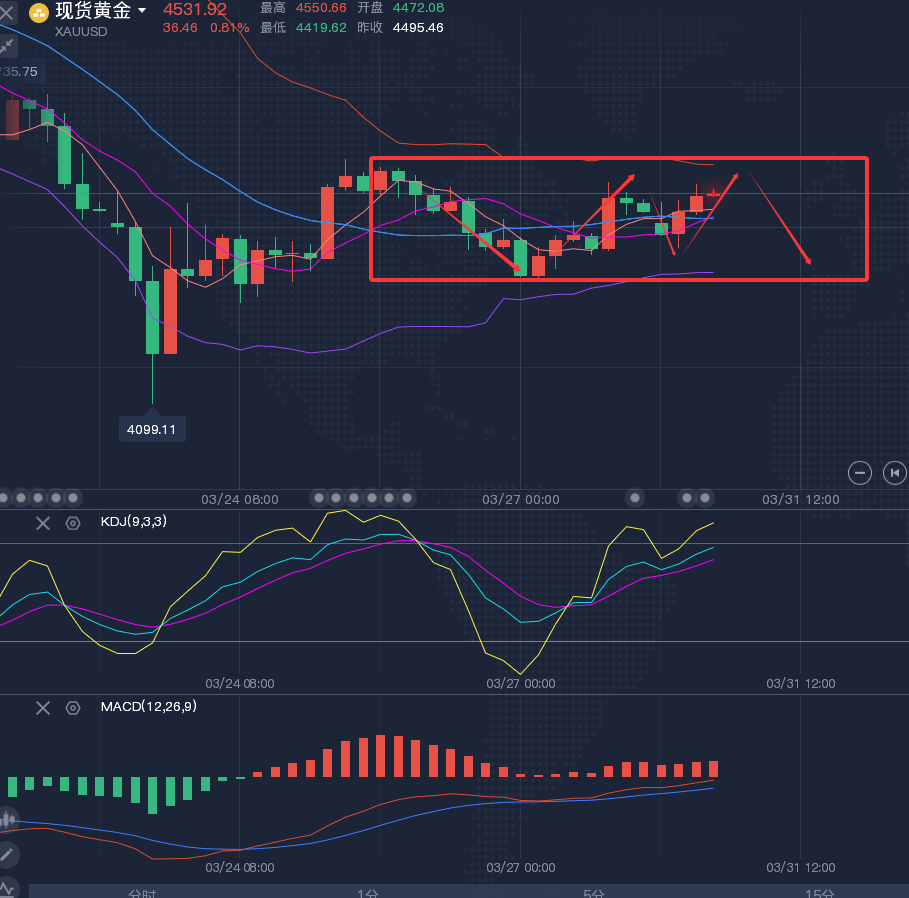 日线方面,日线的走势其实和周线区别不大,一方面有反弹的预期,另一方面上方又有压制,所以我的建议是高位做空为主,低多为辅!具体的位置可以参考四小时级别,黄金四小时的震荡空间进一步被压缩,最近几天不管是反弹还是回落,都没有给到特别极限的位置,所以短线高空为主,关注4550-4600区域,逢低做多为辅,关注4370-4400区域,多空大概都有个200个点空间,注意的是 一旦行情有所突破,如果做错了方向,一定要果断止损出局。