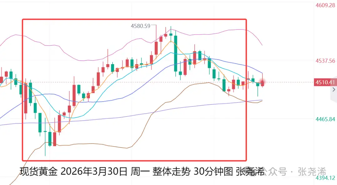 上交易日周一(3月30日):国际黄金震荡收涨,维持近期的震荡格局,且对于原油和美元的走强反应有所脱敏,同时鲍威尔释放长期通胀预期仍受控的鸽派信号,市场撤回对美联储今年加息的押注,这暗示后市有望在筑底震荡后再度转强攀升,重回5000美元关口或上方。下方则关注近期震荡区间底部支撑,以及布林带下轨支撑附近选择进场。
