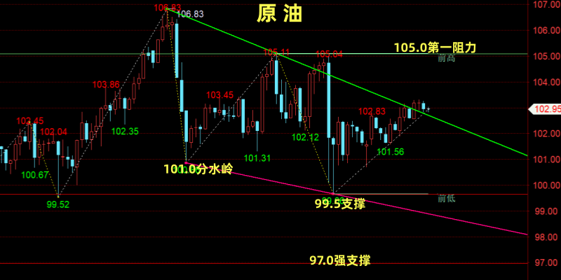 【个人建议:高空为主;WTI分水岭:101.0/桶!以上观点,仅供参考;分散合理布局,严控风险!关注笔者(企鹅:304236956)投资不焦虑,交易有方法】