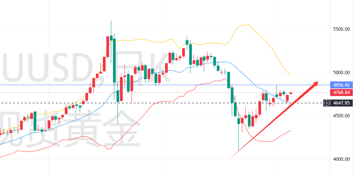 技术面解析:日线级别来看,金价整体处于中期上行趋势当中,上一交易日收出长下影阳线,彻底夯实下方支撑,形成典型的探底回升形态,完美回补早盘跳空缺口,多头力量占据绝对主导。当前金价稳稳站稳5日、10日、20日均线之上,均线系统全程呈现多头排列,各周期均线同步向上拐头,逐步形成层层支撑,短期均线支撑上移至4745美元附近。附图指标MACD快慢线在0轴上方金叉发散,红色动能柱持续增量,多头动能稳步释放;KDJ指标处于中高位区间向上运行,无明显超买死叉信号;RSI指标维持在强势区间,布林带轨道开口向上,金价紧贴中轨上方运行,逐步向上轨靠拢,整体趋势单边偏强,仅存在短线技术性回调可能,无实质性空头反转信号。