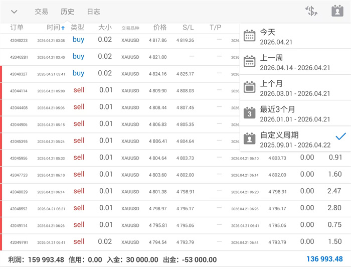 交易里最危险的时候不是进场的时候,而是盈亏出现反转的那个时候。成熟的投资者能冷静地去面对这种反转,这是由于他们清楚:交易不是要去把控市场,而是要把控自己。财富积累离不开时间积累,“慢”反倒造就了“快”。当你不再死盯着K线图,而是把重心转移到打磨交易规则、严格按照纪律去做,就已经走上成为成熟交易者的升级之路。以下为美金EA交易记录: