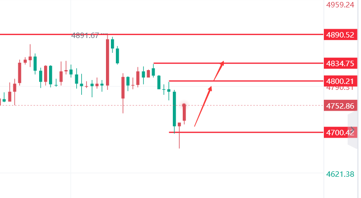 操作思路:今日黄金上方关注4800-4850阻力,下方关注4700-4660支撑;操作思路上文承凯还是维持高空低多的思路不变,还是以震荡为主;重点在4660美元关键支撑,跌破则调整思路;反弹未破4850前,切勿盲目看涨。日内建议在4700上看涨,