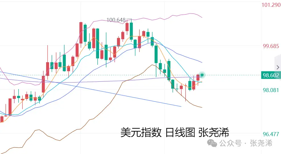 展望今日周四(4月23日):国际黄金开盘延续昨日回撤之力,先行走弱,其地缘局势的反复变动,令市场担忧美伊局势短期难以结束,使得海峡前景和通胀担忧仍在,而会限制金价反弹。另外,目前油价反弹回升,短期就算不回落,也将陷入震荡波动,加上美元指数日图反弹重回200日均线上方,多头重获优势,暗示短期金价面临震荡偏弱回撤的预期较大。