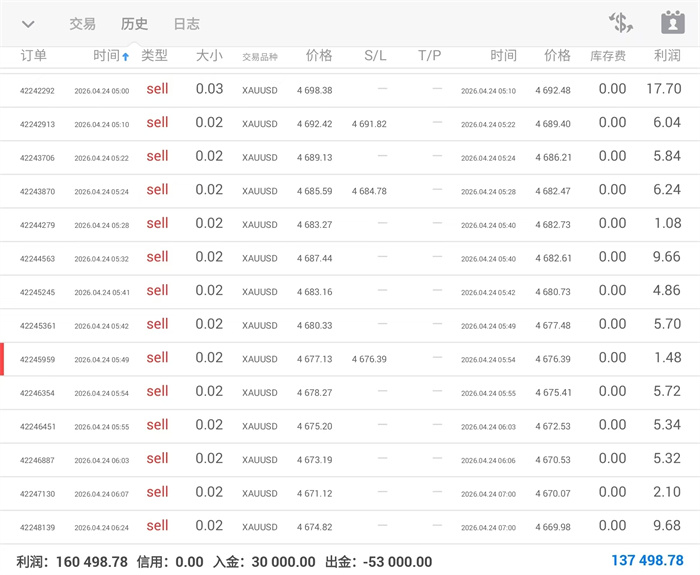 交易的成功,核心在于逻辑、风控与耐心,而非盲目冲动。学会等待,懂得防守,严格执行止损,不因情绪失控而做出错误决策。真正的盈利,来自看得准、拿得住、控得稳。知进退,懂取舍,看得懂就果断出击,看不懂就耐心等待。以下为美金EA交易记录: